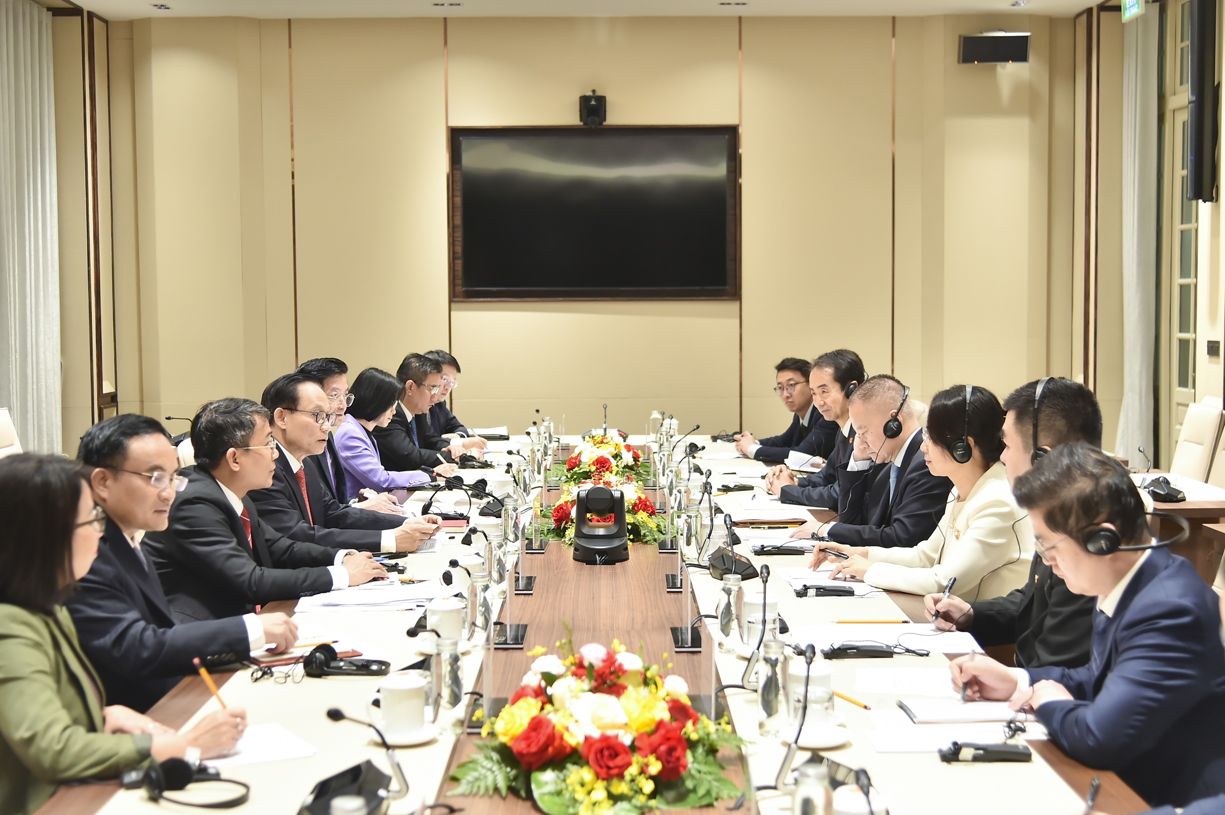 Chân thành cảm ơn những lời chúc mừng tốt đẹp của đồng chí Lưu Hải Tinh, Bộ trưởng Ngoại giao Lê Hoài Trung giới thiệu tổng thể về kết quả Đại hội toàn quốc lần thứ XIV của Đảng Cộng sản Việt Nam; Đại hội không chỉ đề ra mục tiêu, định hướng nhiệm vụ cho nhiệm kỳ 2026 - 2030 mà còn quyết định những vấn đề mang tầm chiến lược đối với tương lai và vận mệnh của dân tộc Việt Nam trong kỷ nguyên phát triển mới. Đồng chí Lê Hoài Trung thông tin về những điểm mới mang tính đột phá, sáng tạo của văn kiện Đại hội XIV, thể hiện bước phát triển sâu sắc, toàn diện về tư duy lý luận, đường lối lãnh đạo của Đảng Cộng sản Việt Nam cũng như sự thống nhất ý chí của toàn Đảng và nhân dân Việt Nam. Ủy viên Bộ Chính trị, Bộ trưởng Lê Hoài Trung nhấn mạnh Đại hội đã lần đầu tiên xác định đối ngoại, hội nhập quốc tế cùng với tăng cường quốc phòng, an ninh là nhiệm vụ trọng yếu, thường xuyên; khẳng định Việt Nam thực hiện nhất quán đường lối đối ngoại độc lập, tự chủ, tự cường, hòa bình, hữu nghị, hợp tác và phát triển, đa phương hoá, đa dạng hoá quan hệ đối ngoại, tham gia chủ động, có trách nhiệm vào việc giải quyết các vấn đề chung của khu vực và quốc tế.