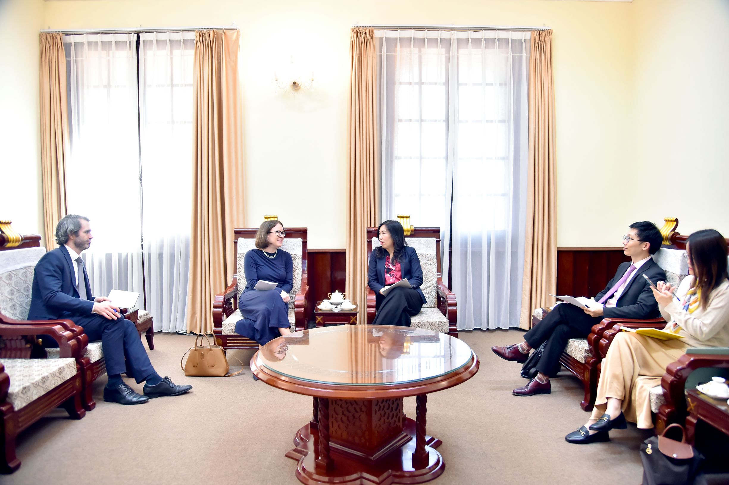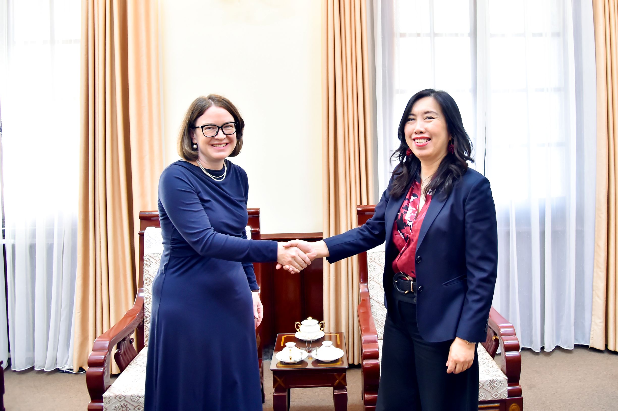 Bày tỏ vui mừng trước những bước phát triển trong quan hệ hai nước, Đại sứ Ní Fhallúin nhất trí với đề xuất của Thứ trưởng Lê Thị Thu Hằng về việc thúc đẩy trao đổi đoàn các cấp, đặc biệt là cấp cao; phối hợp chặt chẽ trong việc tổ chức các hoạt động kỷ niệm 30 năm thiết lập quan hệ ngoại giao Việt Nam - Ai-len vào năm 2026, đồng thời chia sẻ Ai-len đang lên kế hoạch triển khai nhiều sự kiện văn hóa – nghệ thuật ấn tượng nhân dịp này. Đại sứ Ní Fhallúin nhấn mạnh việc sinh viên Việt Nam học tập tại Ai-len ngày càng tăng sẽ là cầu nối quan trọng thúc đẩy quan hệ hữu nghị hai nước.